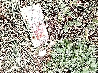 "Hairy teen does outdoor pussy play"