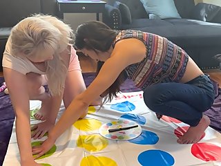 "Two hot lesbians are playing a strip twister game"