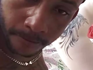 "Brazilian chick get her fuck holes pumped hard by a tattooed dude on the sunbed"