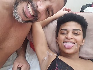 "Perverted stepdaughter eats her stepfather's cock while her mother watches and masturbates"