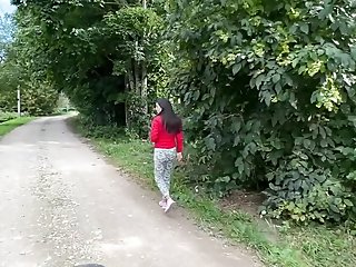 "Brunette Guy Bangs Deep a Teen with Shaved Pussy in a Public Place"