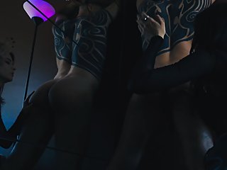"two hot ladies in patent leather get fucked by a big dick"