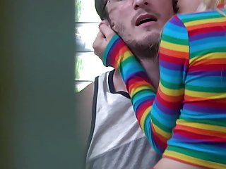 "My stepsister finds me masturbating in her bathroom and gives me the pleasure of cumming on her young face"